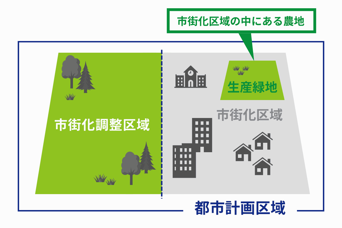 生産緑地法では、「3-1.生産緑地地区」または「3-2.特定生産緑地地区」に該当する場合に制限がかかります。これらの区域外の農地は、規制の対象外です。